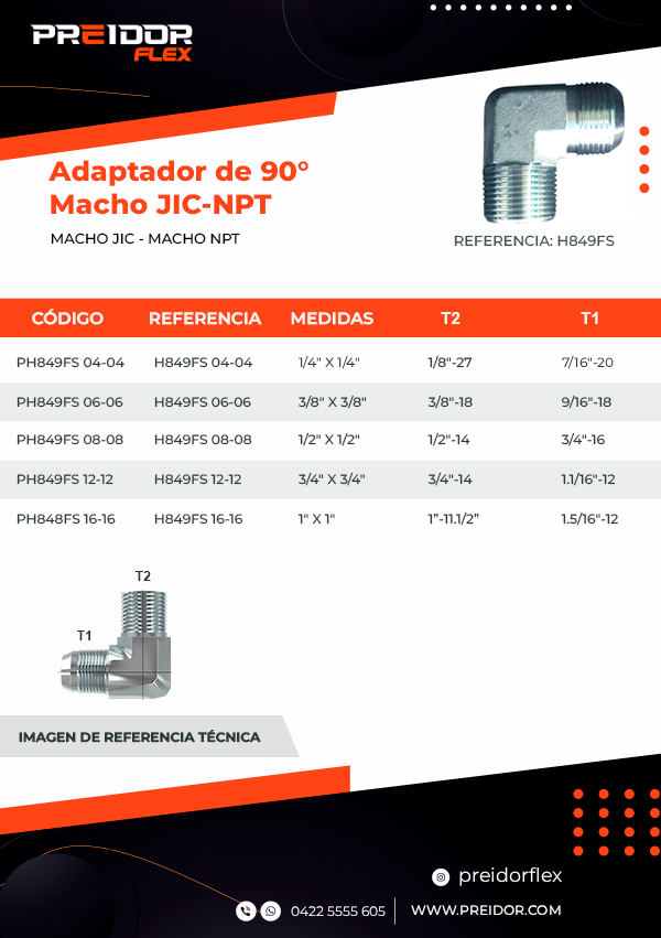 ¿Tus mangueras se fuerzan en ángulos extraños? ¡Evita el estrés y las fugas! Nuestros adaptadores en codo de 90° te permiten redirigir tus líneas hidráulicas con precisión y seguridad. Conecta un puerto macho NPT a una línea macho JIC en un ángulo perfecto, optimizando el espacio y mejorando el flujo. ¡Diseño inteligente para un rendimiento superior!