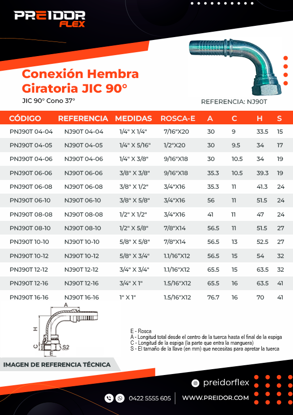 - Tipo de Conexión 1 (Tuerca): Hembra JIC 37° Giratoria