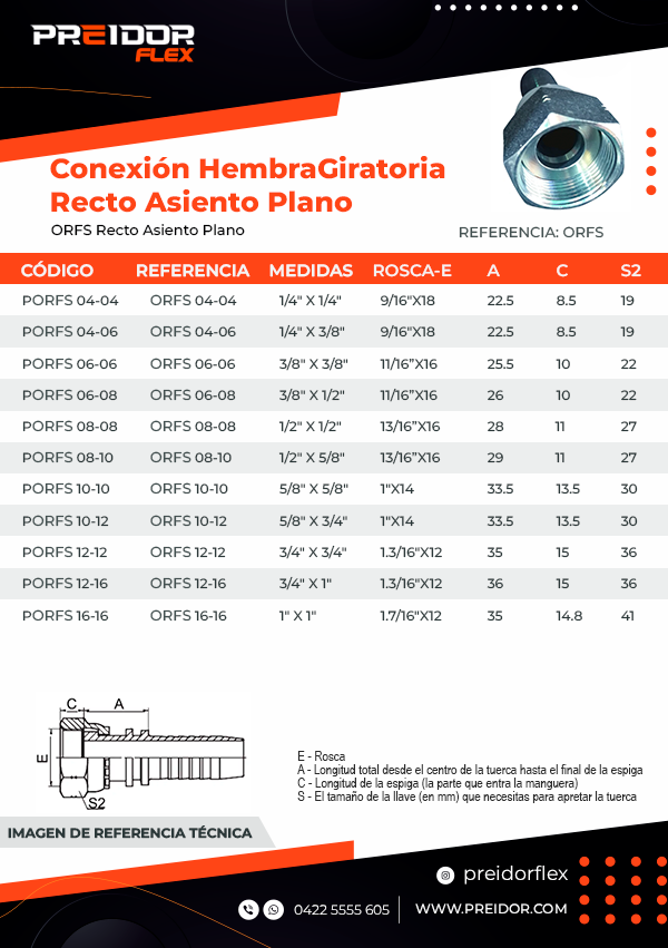 • Tipo de Conexión 1 (Tuerca): Hembra Giratoria ORFS