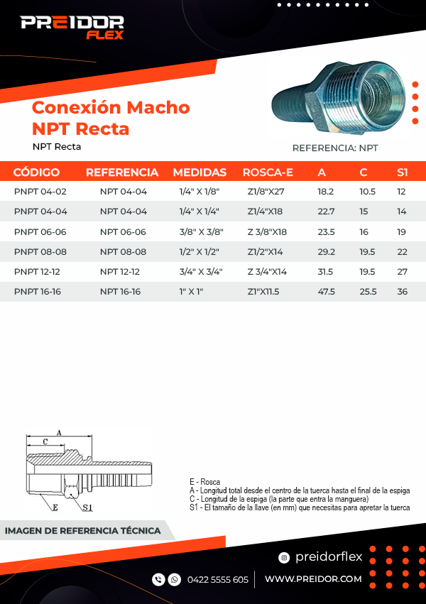 - Tipo de Conexi贸n 1 (Esp谩rrago):聽Macho Fijo NPTF